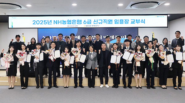 [한라일보] NH농협은행 제주본부(본부장 고은정)는 15일 대회의실에서 6급 신규채용 직원 12명에 대한 임용장 교부식을 가졌다.