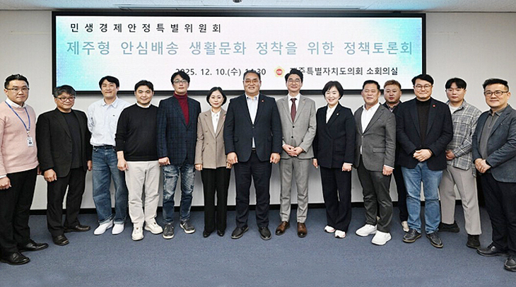제주특별자치도의회 민생경제안정특별위원회(위원장 강봉직)는 지난 10일 도의회 소회의실에서 '제주형 안심배송 생활 문화 정착을 위한 정책토론회'를 개최했다.