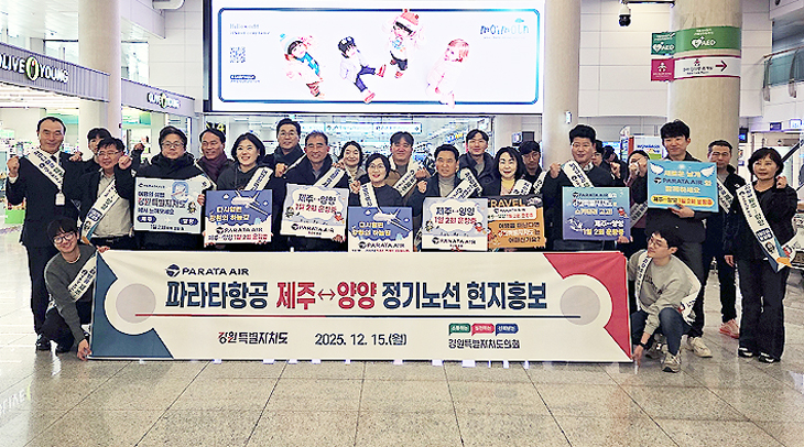 [한라일보] 강원특별자치도(도지사 김진태)는 지난 15~16일 제주 현지에서 파라타항공'제주~양양' 노선 홍보 등 도내공항 활성화를 위한 현지 홍보 캠페인을 추진한다.
