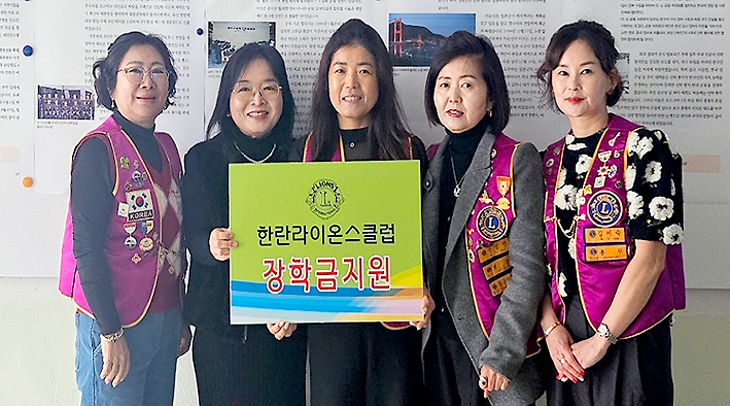 국제라이온스협회 354-G지구 한란라이온스클럽(회장 김정림)은 지난 15일 회원들이 참석한 가운데 제주대학교 사범대학부설고등학교를 방문해 미래를 이끌어갈 인재로 성장하길 바란다는 뜻을 담아 장학금을 전달했다.
