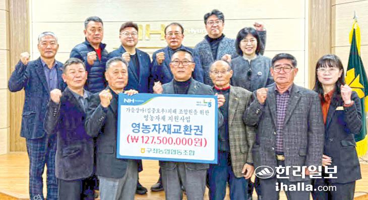 구좌농협(조합장 윤민)은 지난 가을철 이례적인 집중호우 피해를 입은 조합원들에게 경영안정 지원을 위해 1억2700만 원 상당의 영농자재교환권을 최근 지급했다.