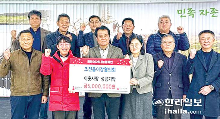 제주시 조천읍 이장협의회(회장 강익상)는 지난 17일 지역 내 어려운 이웃을 위한 성금 500만원을 제주사회복지공동모금회(회장 강지언)를 통해 조천읍에 기탁했다.
