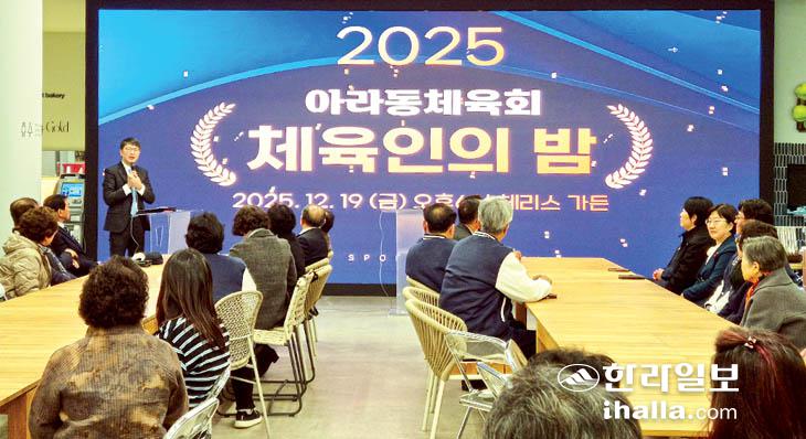 제주시 아라동체육회(회장 문석희)는 지난 20일 해리스가든연회장에서 아라동체육회 회원 및 지역 내 자생단체장 등 70여 명이 참석한 가운데 '체육인의 밤'행사를 개최했다.