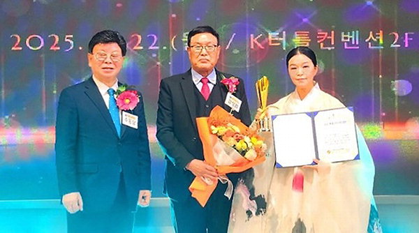 [한라일보] 제주 대금 연주자인 신은숙씨가 지난 22일 서울 신촌 케이(K)-터틀컨벤션에서 열린 2025년 제8회 아시아리더대상 시상식에서 '2025 한국을 빛낸 예술' 공연 부문 대상을 수상했다.