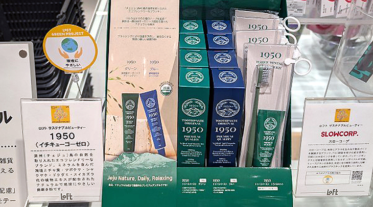 제주 향토 기업인 1950주식회사(대표 오세민)는 최근 자사의 제품인 '1950치약'이 일본 대형잡화점 LOFT와 HANDS의 약 180여 개 매장에 입점해 성공적으로 판매중이라고 밝혔다. 이에 대해 제주경제통상진흥원 고병기 원장은 "제주상품의 지속 가능한 해외수출과 판로 확대를 적극 추진해 나가겠다"고 밝혔다.