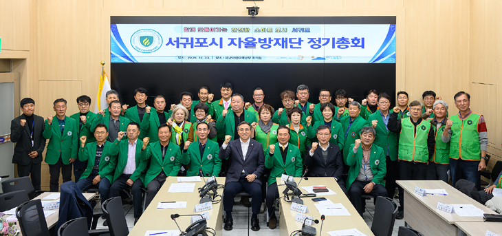 서귀포시 자율방재단은 지난 23일 서귀포시 재난안전대책본부 회의실에서 오순문 시장과 김영철 서귀포시자율방재단장, 읍면동 단장·단원 50여 명이 참석한 가운데 정기총회를 개최했다. 회의에서는 예래동 자율방재단장에게 행정안전부장관표창이 수여됐다.