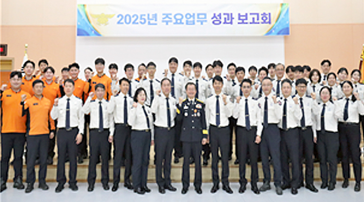 서귀포소방서(서장 고정배)는 지난 23일 대회의실에서 소방공무원 70여 명이 참석한 가운데 '2025년 주요업무 성과보고회'를 개최하고 한 해 동안의 주요 성과를 공유하며 향후 운영 방향을 모색했다. 또한 소방유공자에 대한 시상을 진행했다.