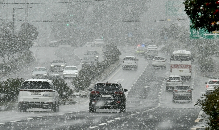 눈 내리는 제주지방. 한라일보DB