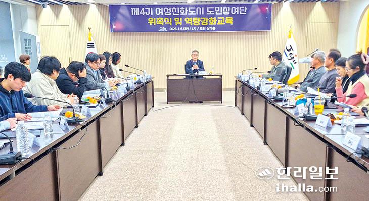 [한라일보] 제주도는 6일 제주 여성친화도시 정책을 함께 만들어갈 '제4기 도민참여단' 30명에 대한 위촉식과 역량 강화 교육을 개최했다. 참여단은 앞으로 2년간 여성친화도시 조성 사업 발굴과 정책 제안, 생활 속 불편 사항 모니터링과 개선 의견 제시, 홍보 활동 등을 펼친다.