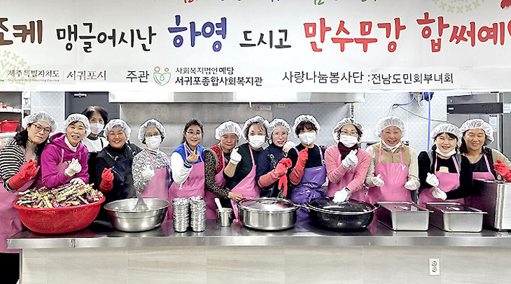 전남도민회부녀회(회장 김미자)는 7일 서귀포종합사회복지관 경로식당을 방문해 어르신 300여 명에게 점심 식사를 지원하며 따뜻한 나눔을 실천했다.