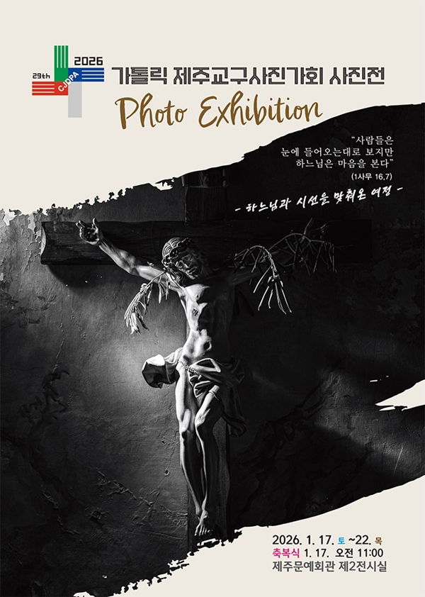 이번 전시는 '하느님과 시선을 맞춰온 여정'이라는 주제로 회원 25명이 제주 고유의 아름다움과 해외 성지의 경건함을 담아낸 사진 작품 65점을 선보인다. 강우일 주교를 비롯한 여러 신부들의 작품도 함께 전시된다.