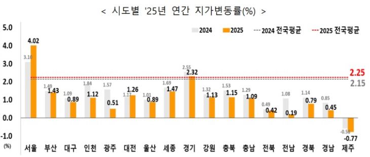 지난해 땅값 또 제주만 떨어졌다... 3년째 내림세