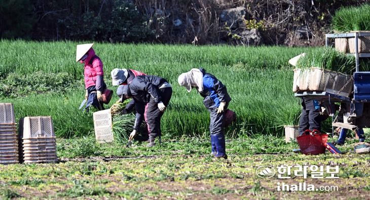 쪽파 수확 작업. 한라일보 DB