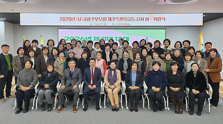 (사)고향주부모임 제주특별자치도지회(회장 김진범)는 지난 27일 농협제주본부에서 회원 60여 명이 참석한 가운데 정기총회 및 회장 이·취임식을 개최했다.