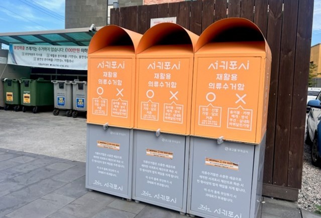 서귀포시는 서귀포형 의류수거함을 클린하우스에 제작 설치해 민간대행사업으로 운영하며 미관 개선과 신규 수익원을 창출하고 있다. 서귀포시 제공