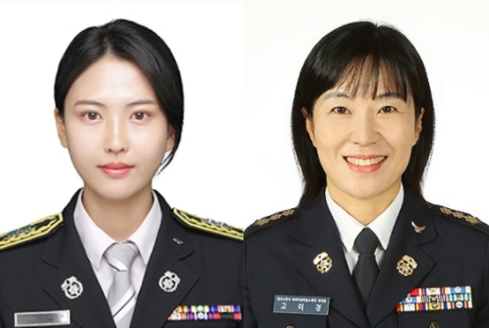 이도119센터 소속 고은혜 소방장(왼쪽)과 아라여성의용소방대 소속 고미경 부대장. 제주소방안전본부 제공