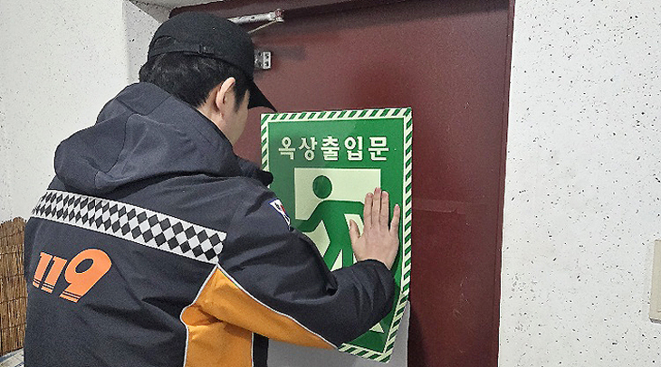 주요 내용은 ▷PC(아크릴)형 피난유도선 설치 ▷옥상출입문 축광 스티커 부착 ▷통제구역 안내표지를설치 등이다.