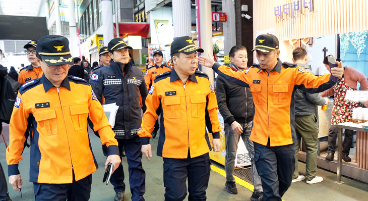 이날 서귀포매일시장을 찾아 화재 취약 요인을 확인하고, 상인들을 대상으로 화재 예방 수칙을 안내했다.
