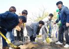 지난 19일 해녀박물관에서 열린 전국 첫 나무 심기 행사에서 황근을 심고 있다. 제주도 제공