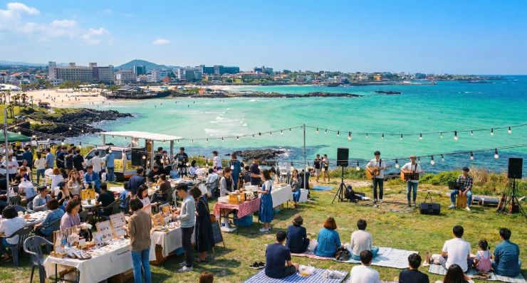 제주시 함덕4구 골목형상점가에서 플리마켓과 버스킹을 로컬콘텐츠화로 구성 연출하겠다는 AI 활용 사진. 제주시 제공