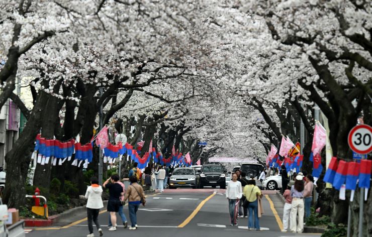 제주시 전농로 일대에서 매년 3월 펼쳐지는 왕벚꽃축제. 한라일보DB