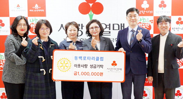 [한라일보] 동백로타리클럽(회장 임정연)은 최근 이웃사랑 성금 100만원을 제주사회복지공동모금회(회장 강지언)에 기탁했다.