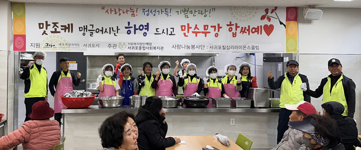 서귀포칠십리라이온스클럽(회장 강창훈)은 지난 23일 서귀포종합사회복지관 경로식당에서 어르신들을 위한 급식 봉사활동을 진행했다.