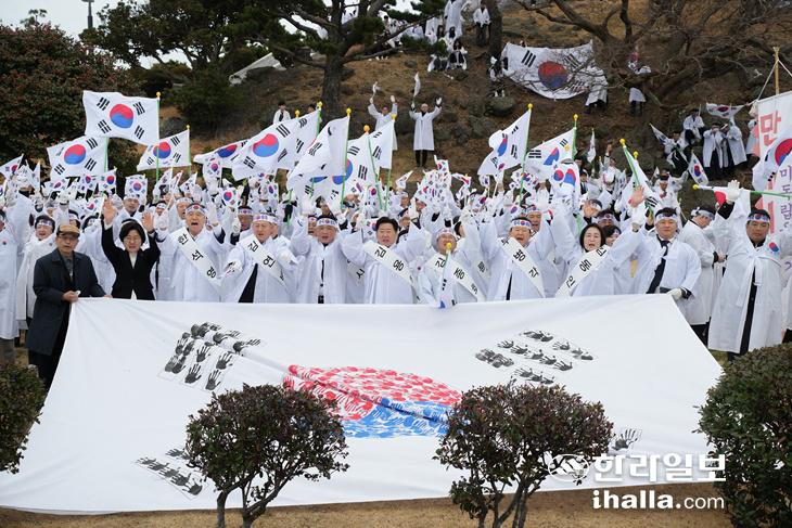 제107주년 3·1절인 지난 1일 제주시 조천읍 미밋동산에서 조천만세운동을 재현하고 있다. 제주도 제공