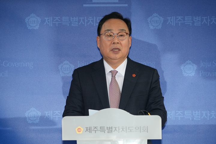 3일 제주도의회 기자실에서 오승식 교육의원이 기자회견을 열고 있다. 제주도의회 제공