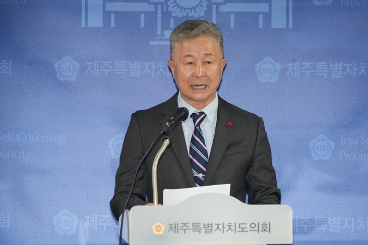 양용만 제주특별자치도의회 의원(국민의힘, 한림읍)이 4일 제주도의회 기자실에서 기자회견을 하고 있다. 도의회 제공.