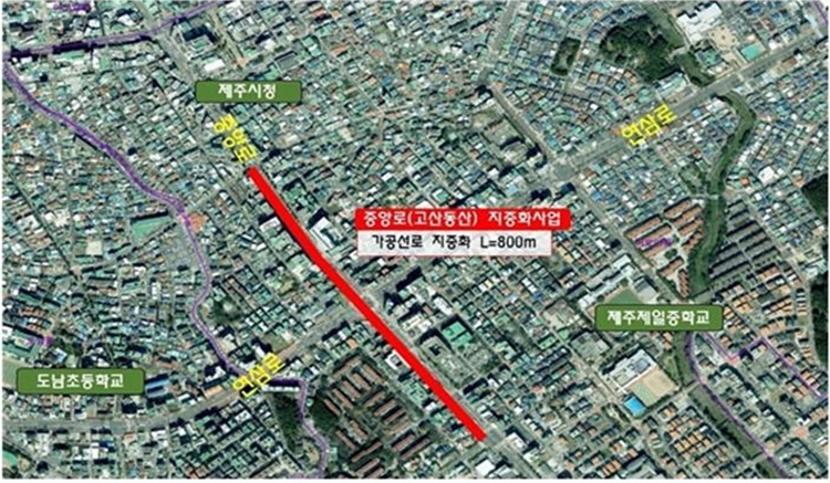 중앙로(고산동산) 지중화 사업 위치도. 제주도의회 제공