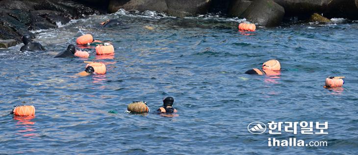 [한라일보] 꽃샘추위가 이어진 10일 제주시 도두동 사수마을 앞 바다에서 해녀들이 물질을 하고 있다. 강희만기자