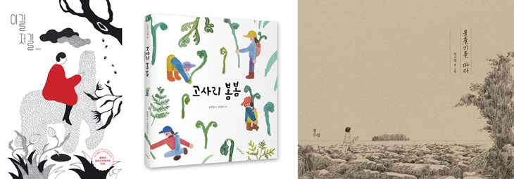 왼쪽부터 문정인의 '이길 저길', 이강인의 '고사리 봄봄', 정지원의 '물줄기를 따라' 그림책 표지. 제주문학관 제공