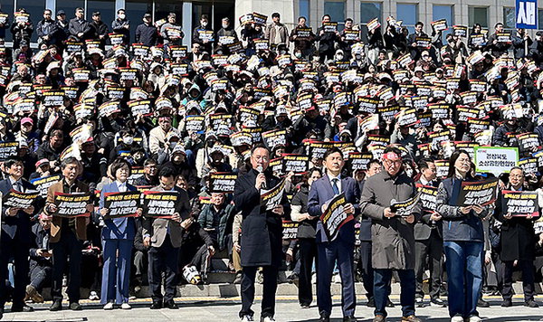 [한라일보] 제주도상인연합회는 지난 19일 국회 앞에서 전국 17개 시·도 상인들과 관련 단체 회원 등 약 1500여 명이 참석한 가운데 대형마트 온라인 새벽배송 허용 중단을 촉구했다. 이충환 전국상인회장은 "대형마트 영업시간 제한과 의무휴업 제도는 대기업과 소상공인이 공존할 수 있도록 만든 최소한의 안전장치"라고 말했다.
