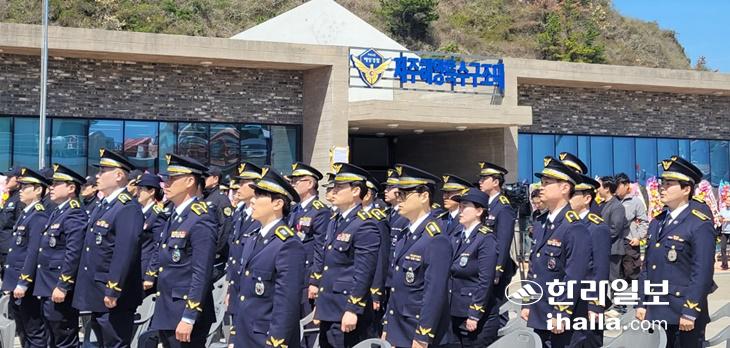 8일 오후 서귀포시 안덕면 화순항에서 해양경찰청 중앙해양특수구조단 제주해양특수구조대 발대식이 열리고 있다. 박소정기자