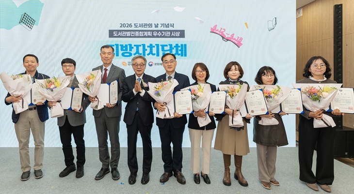 지난 10일 제4회 도서관의 날 기념식에서 제주도 한라도서관 등 지방자치단체 우수 기관 수상자들이 기념사진을 찍고 있다. 제주도 제공