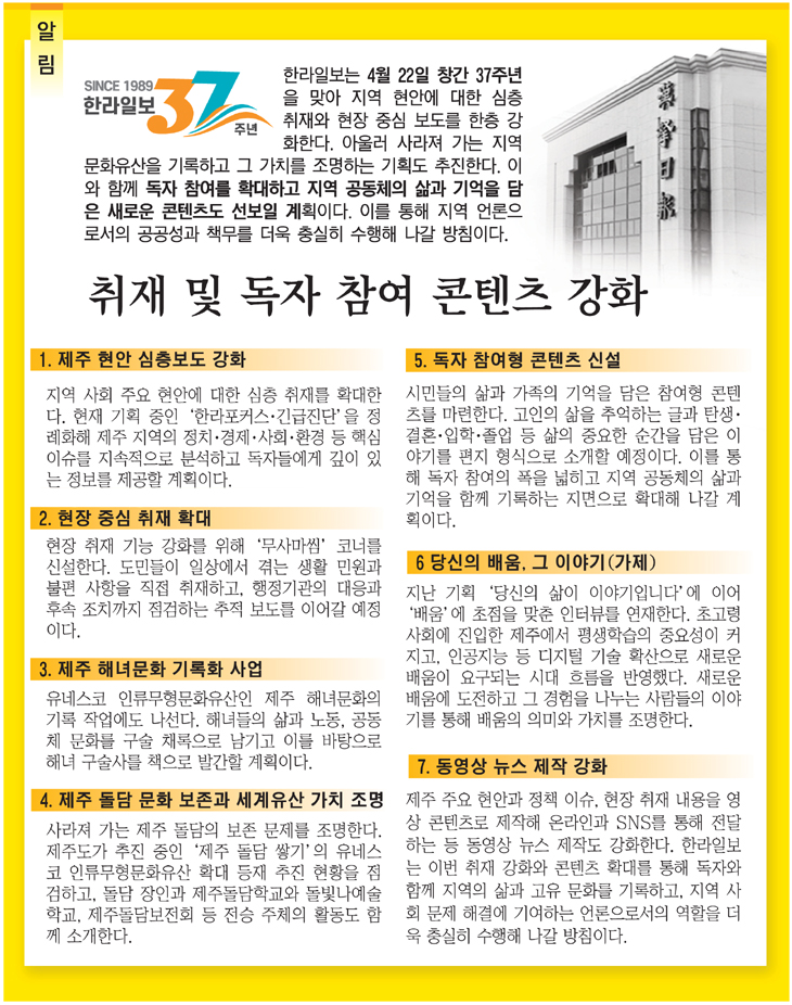 [알림] 창간 37주년, 취재 및 독자 참여 콘텐츠 강…