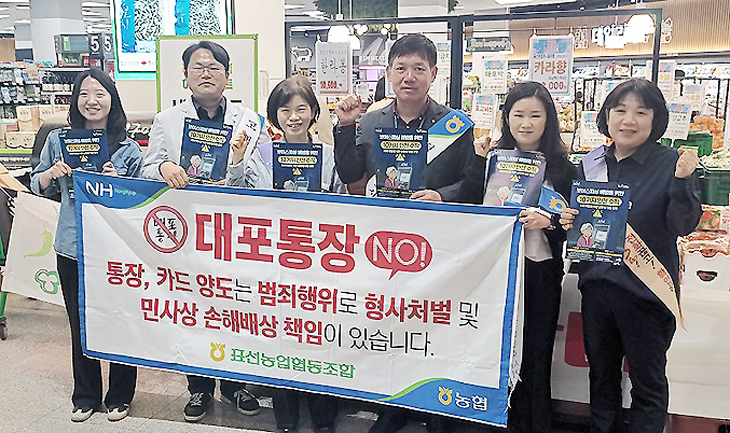 표선농협(조합장 김용우) 임직원들은 28일 농협 본점과 하나로마트 일원에서 주민들을 대상으로 전기통신금융사기 피해 예방과 대포통장 근절 캠페인을 실시했다.