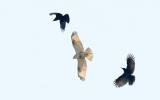 [한라일보] 8일 제주시 연동 상공에서 큰부리까마귀 2마리가 말똥가리(가운데)를 공격하는 모습이 관찰됐다. 강희만기자 ■기사제보▷카카오톡 : '한라일보' 또는 '한라일보 뉴스'를 검색해 채널…