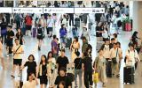 [한라일보] 장맛비같은 비 날씨가 마무리되고 폭염이 다시 시작된 19일 제주국제공항 국내선 도착 대합실이 여름 휴가를 제주에서 보내려는 관광객들로 북적이고 있다. 제주기상청은 20일부터 낮 …