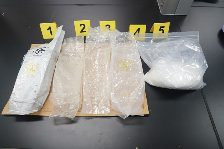 확인 결과 두 곳에서는 ‘차(茶)’라고 적힌 포장지가 1개씩 발견됐고, 내부에는 사각블록 형태의 흰색 결정체 각각 약 1kg이 밀봉돼 있었다.