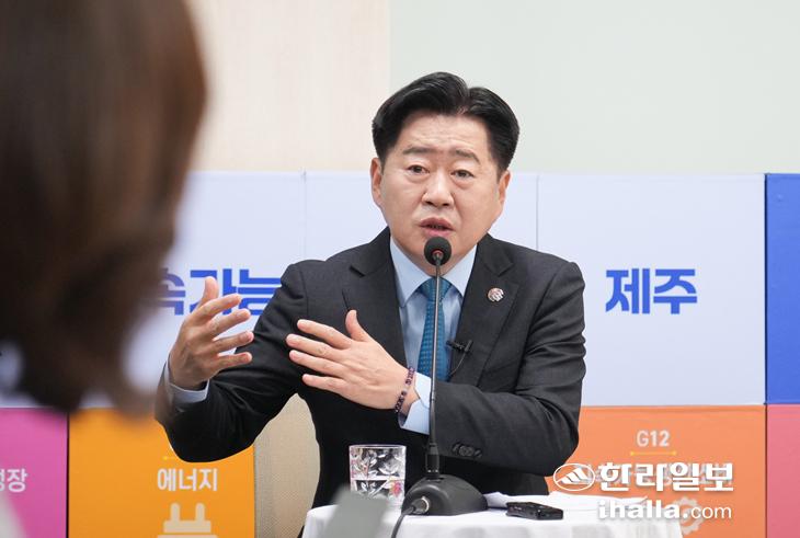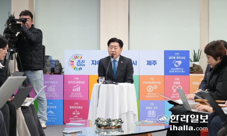 4일 기자간담회 갖는 오영훈 제주지사. 제주자치도 제공