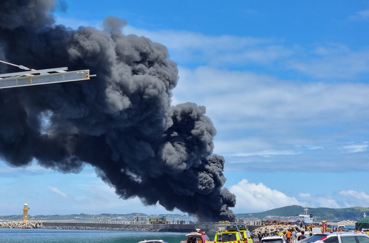 [2보] 성산항 선박 화재 8시간 넘게 진화중