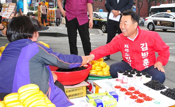 제주시 연동을 더불어민주당 강철남 제주도의원 후보는 31일 공식선거 운동 첫날 한라병원 인근 등에서 운동원들과 함께 거리인사를 하며 지지를 호소했다.  강 후보는 "유권자에게 보다 가까이 다가가고 지역에 인물을 알리…